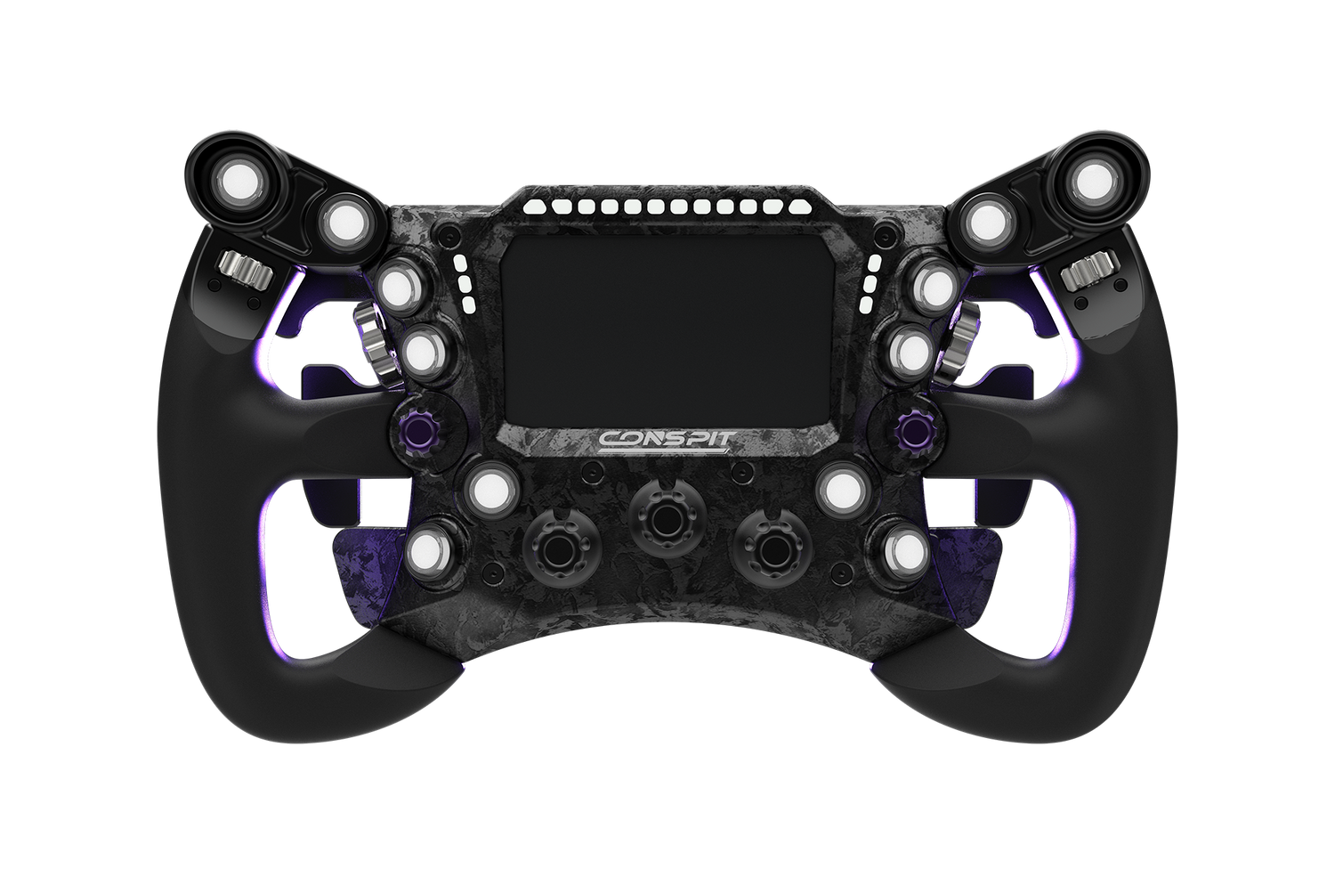 290 GP is the true next-generation simulation racing wheel that realizes the CONSPIT "N+1" product concept. It breaks the planar constraints of similar products through a unique 3D ergonomic design and redefines the shape of Formula steering wheels with multiple structural innovations, aiming to further expand the boundaries of high-quality simulation driving experiences. The 290 GP is constructed with a molded carbon fiber front panel and a high-strength die-cast aluminum alloy body. It features a 4.3'' custom LCD screen, modular RGB ergonomic buttons, dual-clutch paddles, a rocker-type paddle shifter combination, four thumb wheels, three 12-position rotary switches, and two seven-way joysticks. Highlights Light Yet Rigid The molded carbon fiber front panel combined with a high-strength aluminum alloy back cover achieves a lightweight goal of 1350g while providing unprecedented rigidity in the overall structure, ensuring a solid experience when paired with a high-torque direct drive wheelbase. Breaking Planar Constraints, Redefining 3D Aesthetics Not limited to a planar perspective, it fully combines CONSPIT's aesthetic design with structural optimization in three dimensions, seeking the best visual fulcrum. Breakthrough - Ergonomic Design To help drivers maintain a leading position in competition, the 290 GP's attention to ergonomic details will exceed your expectations. Control Layout Inspired by the HOTAS (Hands On Throttle-And-Stick) interaction logic in aviation, it maximizes the use of thumb-accessible control areas through a three-dimensional component stacking design. CONSPIT's Innovative "Spatial Button Layout" The height and orientation of all buttons are determined by the natural position of the thumb when holding the wheel, forming a specialized layout within the space. 3D stacking brings a higher operational density. Compared to ordinary planar layouts, each operation becomes more effortless and intuitive. EnduroThe 290 GP Enduro grips are specifically designed for long-distance endurance driving, offering exceptional durability and ergonomic design to alleviate grip fatigue, ensuring dual durability. Durable material Utilizing specially modified TPU material, precision molded in a double-layer injection process, the wear resistance and anti-aging properties far exceed the commonly used TPE material found in most steering wheels on the market. It remains free of debris and color fading even after prolonged use. Durability Engineering The grips of the 290 GP are ergonomically designed based on the angles, diameters, and force characteristics corresponding to Formula and some modern GT racing cars; The grip features are determined by ergonomic principles and market research data, compatible with both two-finger and three-finger lower grip styles, ensuring suitability for most users' hand sizes and holding habits; The core holding area is functionally divided to match the curvature of the thenar, hypothenar, and finger joints in a natural holding state. ErgoTouch Modular RGB Ergonomic Buttons Each button is independently assembled in a modular structure, ensuring local stiffness and consistent tactile feedback, providing crisp and direct feedback when pressed; The actuation force and travel distance have been extensively tested and optimised based on subjective evaluations from multiple professional drivers, selecting the best balance point; The aluminum alloy bezel uses precision machining processes, achieving an almost zero-clearance fit with the button cap, with built-in silicone gaskets providing shock absorption and excellent acoustic performance for the module; Customisable RGB lighting, supporting telemetry settings. "Thump-Tick" Thumb Wheel Structure (Patented) - Cross-Section Needed Based on the force characteristics of the thumb in an upward pointing position when holding, CONSPIT uniquely arranges the self-developed "Thump-Tick" tactile feedback structure in this area. The wheel diameter, actuation force, and resistance are optimized for "high immediacy" usage requirements, improving interaction efficiency at this advantageous position. Combined with a more durable roller-type encoder, it provides more precise and clear actuation feedback. "MagFlip" Rocker-Type Magnetic Paddle Shifter Group (Patented) The rocker-type paddle shifters are derived from real Formula racing steering wheels, allowing drivers to use both "push" and "pull" methods for quick gear shifts; MagFlip combines this with a powerful magnetic paddle structure to provide robust tactile feedback, achieving the same functionality as real racing car setups without compromising on paddle feel, further blurring the line between simulation and reality. The sensors utilize Hall-effect non-contact sensing, with sensor assemblies and moving parts completely integrated internally, avoiding electromagnetic interference, dust intrusion, and external contamination. This integrated design ensures maintenance-free operation, durability, and consistent tactile feedback over extended periods, contrasting with independent magnetic paddle systems. Ready-to-go Dashboard Fully integrated high-resolution 4.3'' instrument cluster, 480x800 resolution, 500nit brightness, 60fps refresh rate Equipped with multiple meticulously designed instrument pages tailored to simulation racing needs, displaying commonly used telemetry data at a glance. The proprietary real-time operation pop-up allows drivers to clearly see corresponding changes on the instrument cluster with each maneuver. CDP Quick Release Unlike common ball-type single-lock structures on the market, CDP Quick Release adopts a pin + ball design inspired by real Formula racing quick releases. CNC machined from 7075 aluminum alloy, the pin structure transmits torque and is topology optimized to meet high-strength demands, while the ball is responsible for longitudinal positioning without bearing torque loads. This fundamentally resolves the wear issues of traditional ball-