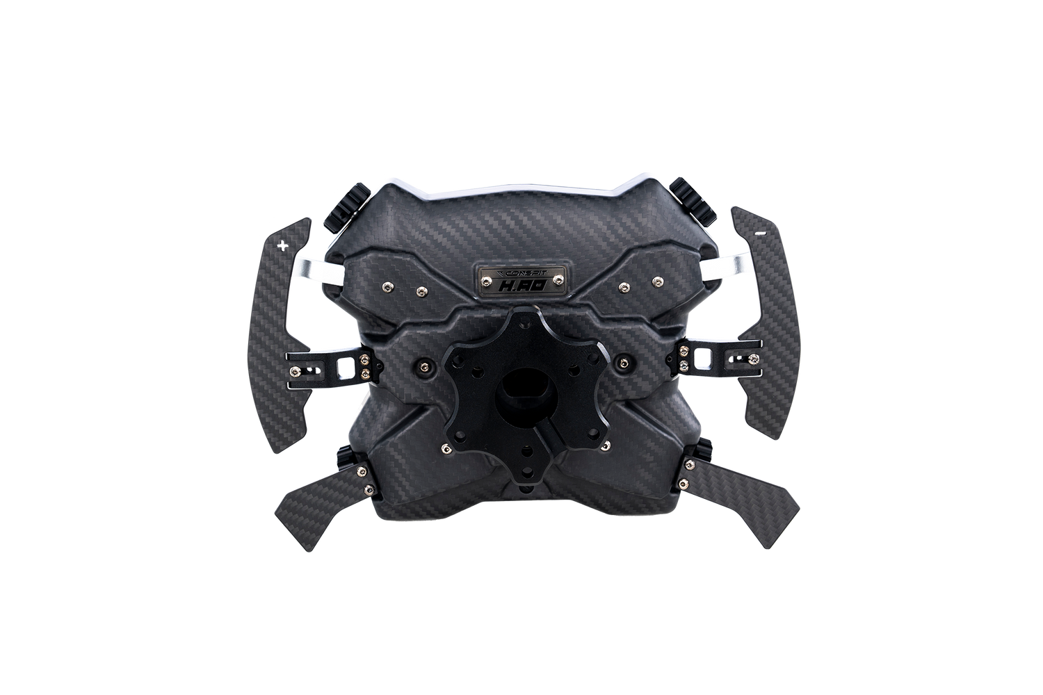 Unlike fiber reinforced injection solutions, the H.AO HUB features a genuine full carbon fiber shell. The rear shell is crafted using carbon fiber prepreg molding process, aiming for rigidity, durability, and lightweight performance in line with steering wheels of real race cars.