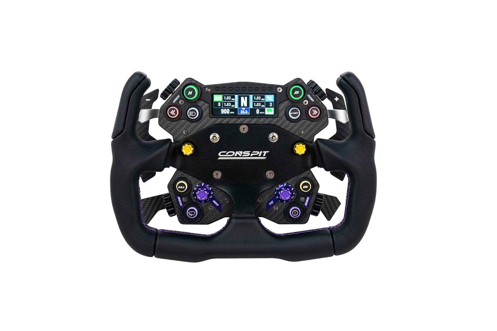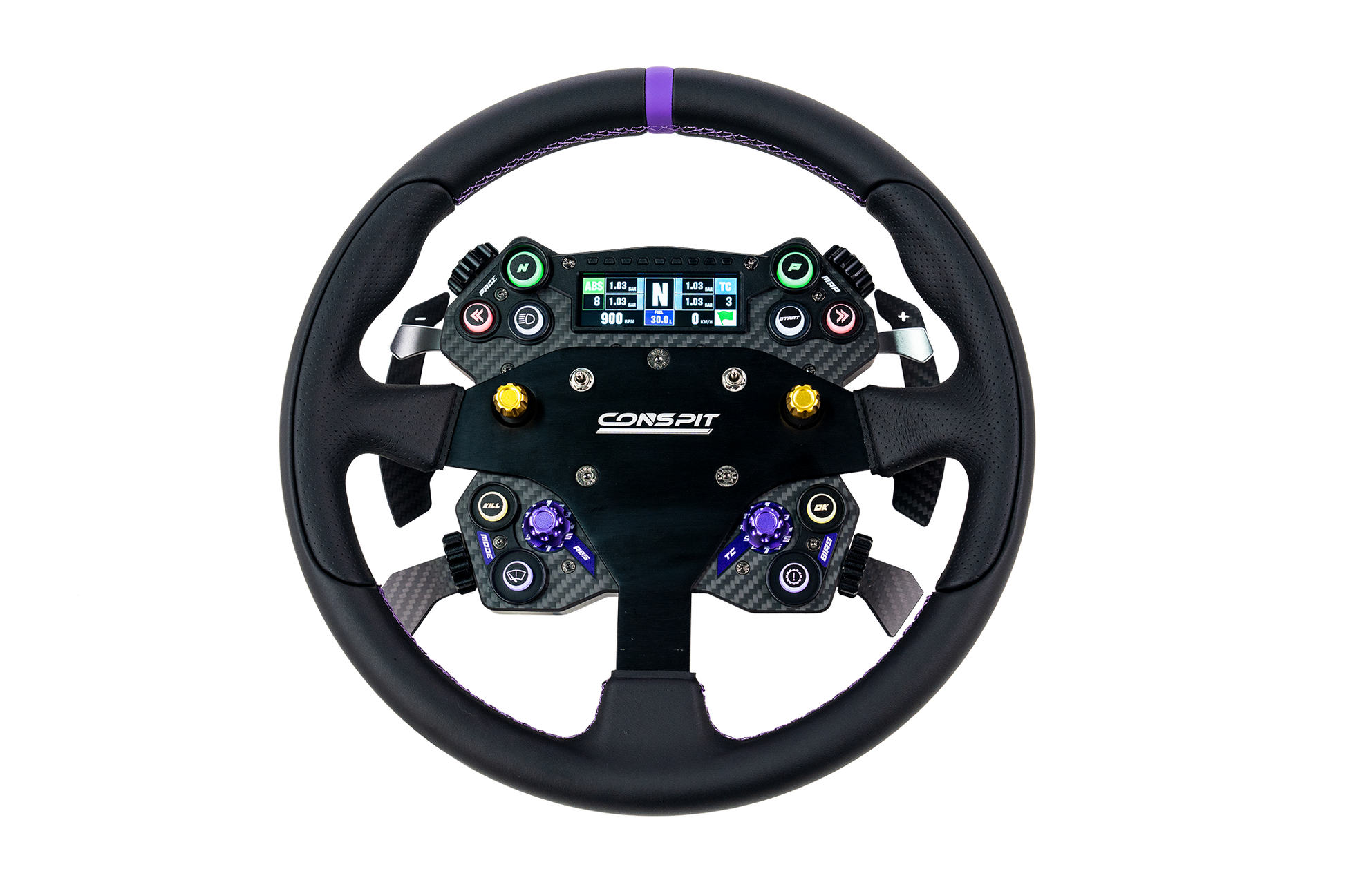 The integrated 7-way switch and toggle switch control module, compatible with CONSPIT's original CX, DX, RX series steering wheel, is easily detachable for compatibility with a broader range of steering wheels.